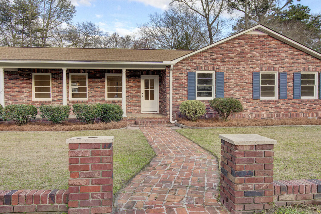This brick ranch home in North Charleston has been completely transformed and is awaiting its new owner. Situated on a large lot, this 2,500+ sq. Ft. home offers popular upgrades and plenty of space to spread out. 2,352 sq. Ft. main home, 855 sq. Ft. garage with attached 164 sq. Ft. office, and 280 sq. Ft storage shed.From the inviting, brick paved front porch you enter the foyer. To your left is a large, sunny gathering room with plenty of space for multiple furniture arrangements. This opens to the well-appointed kitchen which features quartz countertops, new shaker style cabinetry including an island and stainless-steel appliances. Beyond the kitchen is the dining room which makes this open, three room space ideal for daily living and for entertaining. Stepping down from the kitchen is the very large great/game room with great natural light and a10-foot, beamed ceiling. The secondary entry/exit to the house is off this room. In this entry there is a coat closet and access to an enormous mudroom/ laundry room that offers ample space for extra storage.